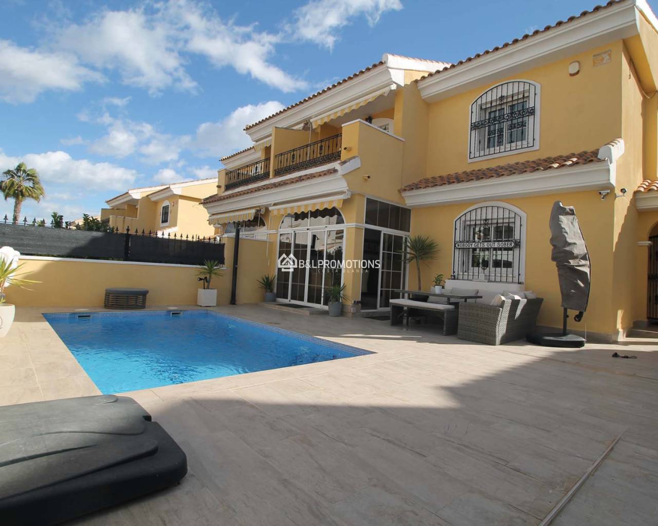 De villa bestaat uit 3 slaapkamers met ingebouwkasten, 2 badkamers, een volledig uitgeruste keuken, woonkamer met eethoek en diverse terrassen. In de tuin vindt u een heerlijk privé zwembad en een barbecue. Het huis is voorzien van airconditioning (warm en koud), plafondventilatoren en televisie. Het huis is beschikbaar voor maximaal 8 personen. Er zijn 3 golfbanen (Villamartin, Las Ramblas, Campoamor) op 5 minuten rijden en restaurants en winkels zijn op loopafstand. De Blauwe Vlag stranden van Orihuela Costa bereikt u ook na een korte autorit.