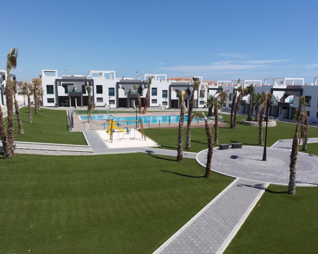 Dit is een kleinschalig complex met geschakelde woningen rondom een prachtige tuin met zwembad en loopafstand naar het strand voor een betaalbare prijs.