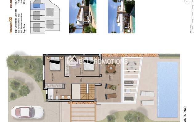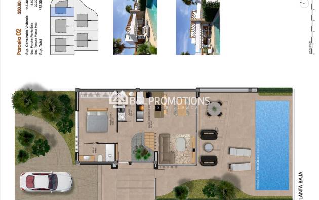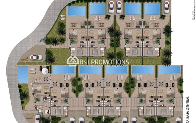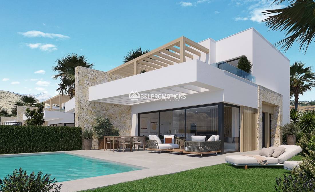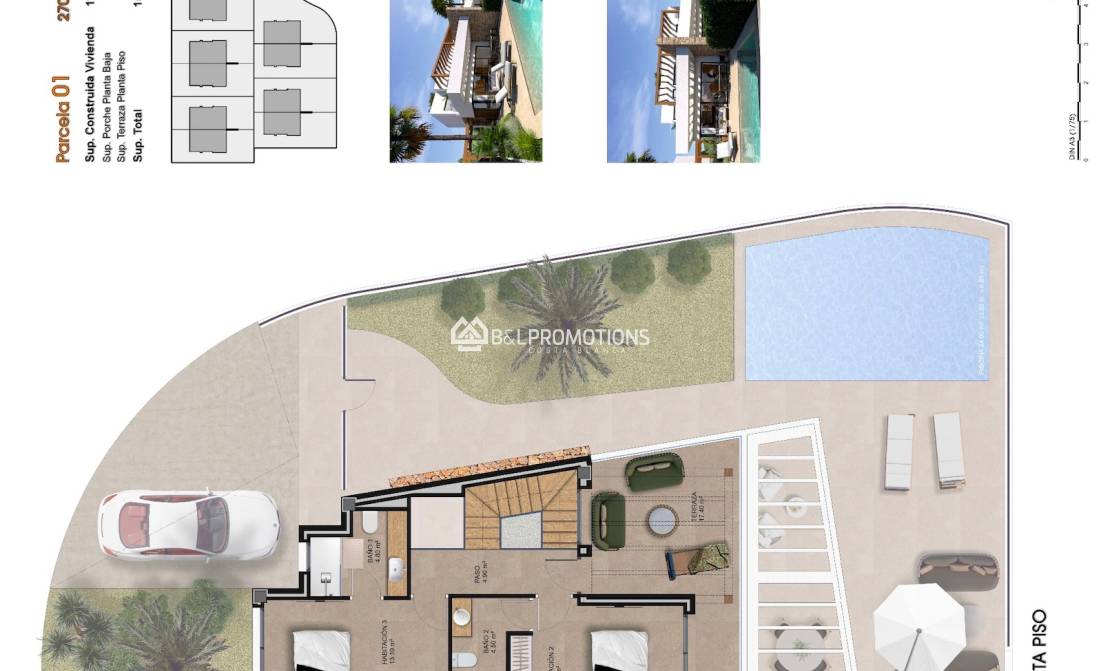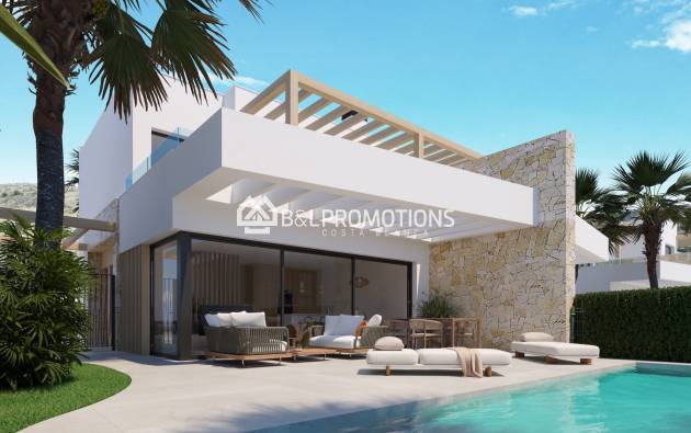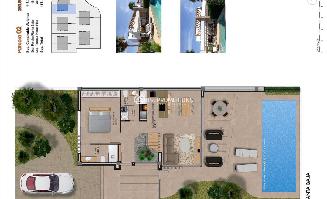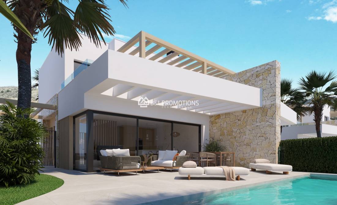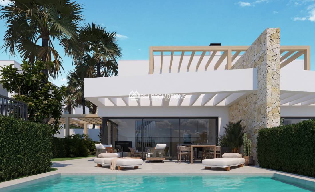Slechts 10 minuten tot het centrum van de bruisende stad Elche bieden wij deze half vrijstaande villa aan. Een uniek projekt op een unieke locatie. Op eerste lijn van de 18 holes golfbaan, zuidligging, prachtig vrij uitzicht en een zeer origineel design. Deze begane grond villa is zeer ruim en wordt geleverd met een prachtig zwembad. Een grote woonkamer met een enorm terras, open keuken, hall, 2 slaapkamers en 2 badkamers op een perceel van ongeveer 340m2. Een oasis van rust op slechts 15 minuten van de luchthaven Alicante.