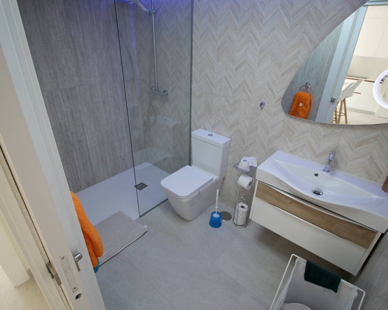 Dit appartement heeft een modern ontwerp met luxe afwerking en bevindt zich in een hoogwaardig residentieel complex met uitstekende faciliteiten. De locatie is uitstekend, met diverse restaurants en een grote supermarkt op loopafstand, en een levendig uitgaanscentrum op slechts 700 meter afstand. Het strand ligt op ongeveer 3 km en het centrum van Torrevieja op slechts 5 km van het complex.