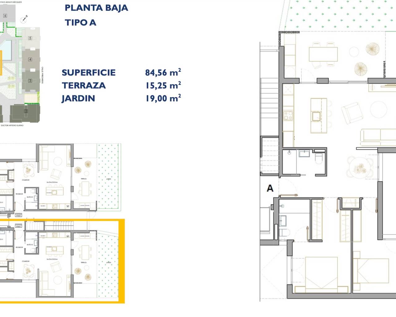 Gelegen in een rustige buurt, vlak bij het centrum, biedt dit nieuwe wooncomplex alle gemakken van dit charmante Spaanse dorp aan de Mar Menor – winkels, restaurants en gezellige terrassen liggen op loopafstand. Ook de stranden zijn dichtbij, op minder dan 1 km.
