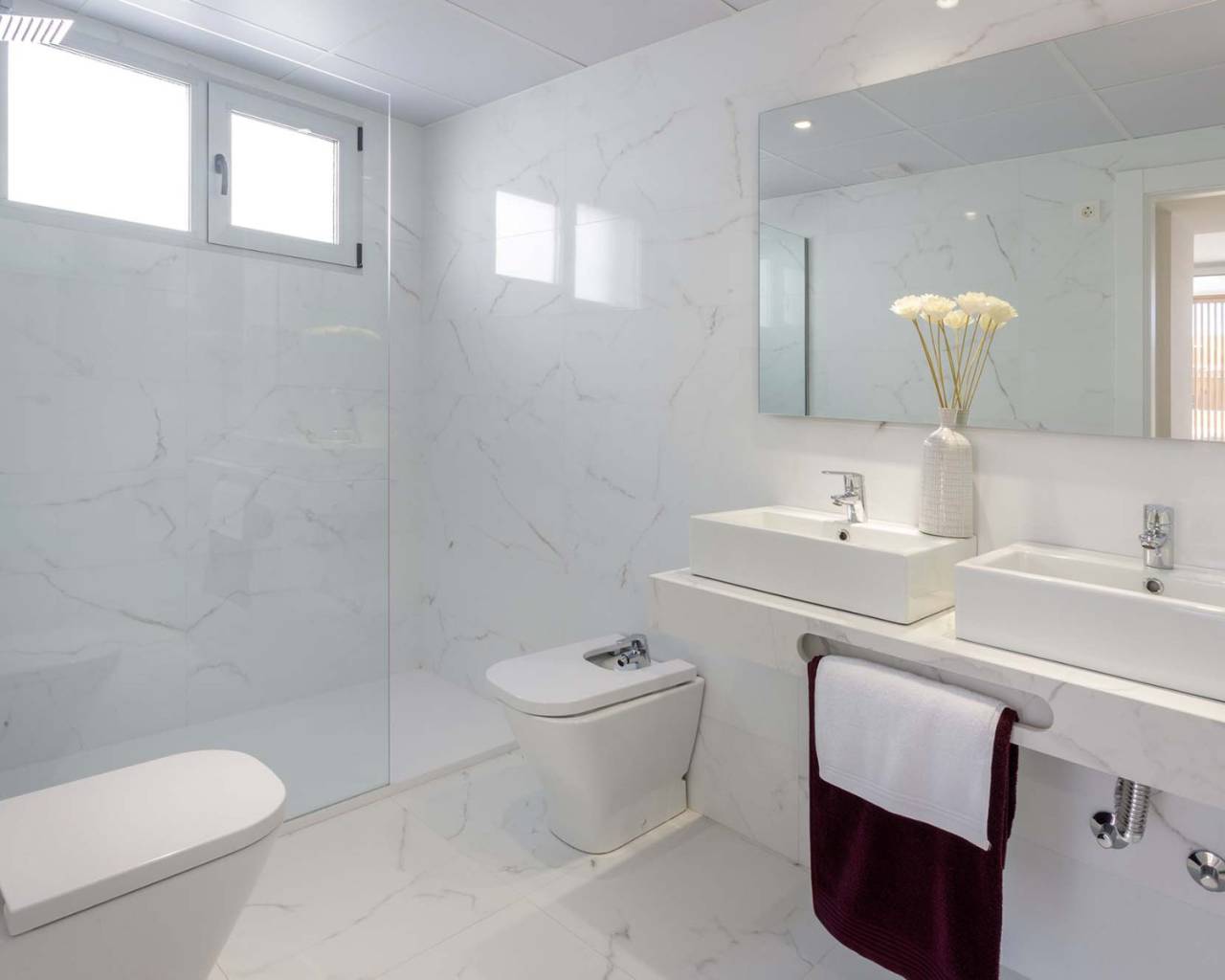 Esta villa tiene un hermoso diseño moderno. La elegante fachada tiene mucha personalidad. El gran salón tiene un techo de casi 8 metros. ¡Perfecto en un clima cálido! Hay una cocina abierta y también un dormitorio y un baño en la planta baja. Desde el salón tiene una hermosa vista sobre su jardín con su propia piscina. Una bonita escalera le lleva al primer piso donde hay 2 amplios dormitorios, cada uno con su propio baño. Desde la primera planta unas escaleras le llevan a una enorme terraza en la azotea.