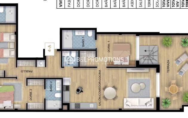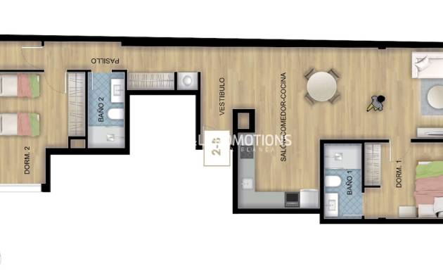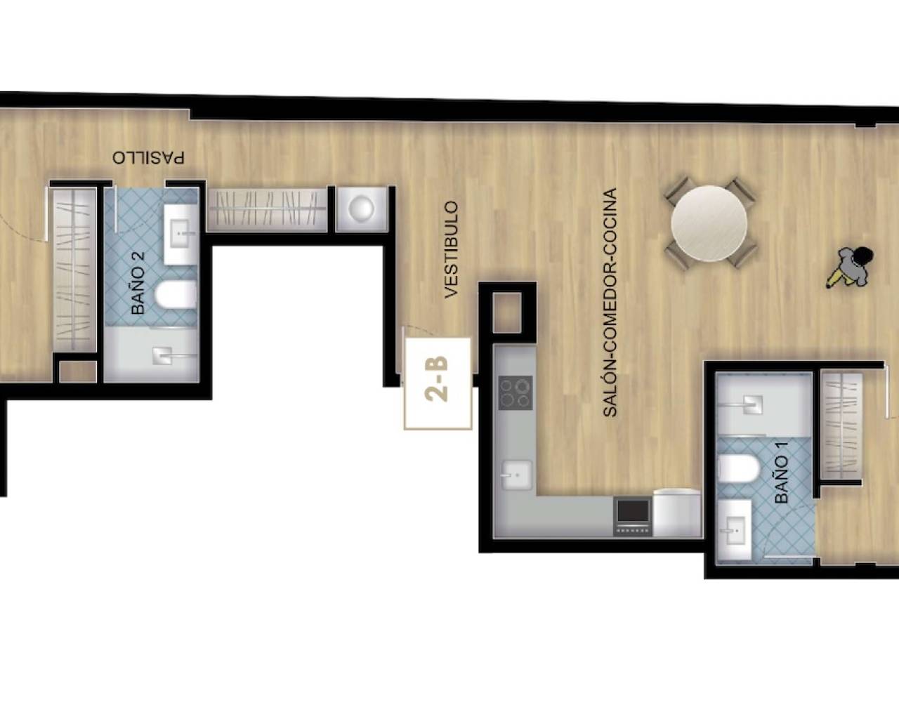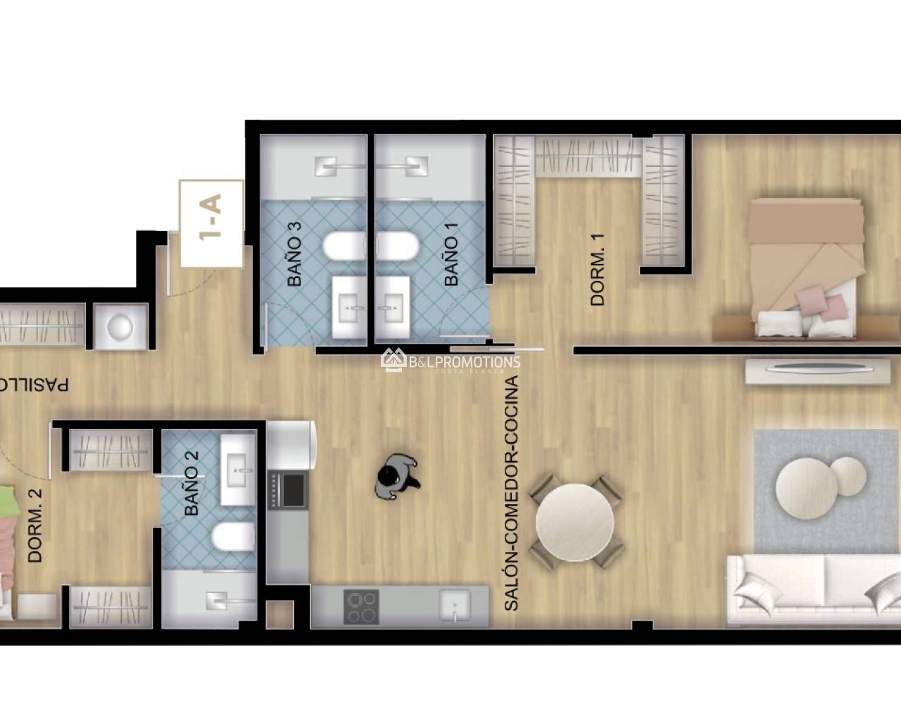 Estos pisos muy lujosos están construidos con 3 dormitorios estándar, 3 baños, un amplio salón con cocina abierta con isla para cocinar, y un balcón.