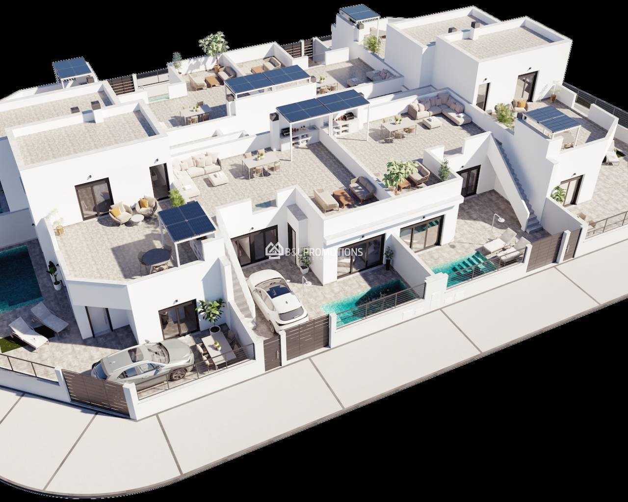 Ubicadas en el encantador y tradicional pueblo español de Roldán, estas propiedades están pensadas para quienes buscan tranquilidad y calidad de vida, sin renunciar a la cercanía de la costa. Las playas de Los Alcázares se encuentran a solo 15-20 minutos en coche, y también la bonita localidad costera de La Manga está a poca distancia.