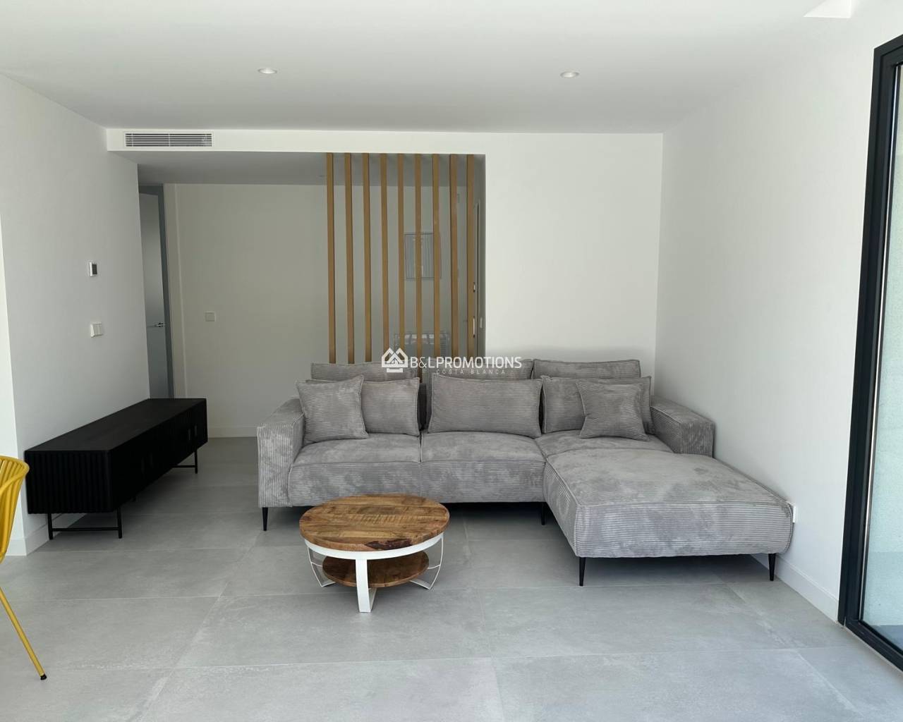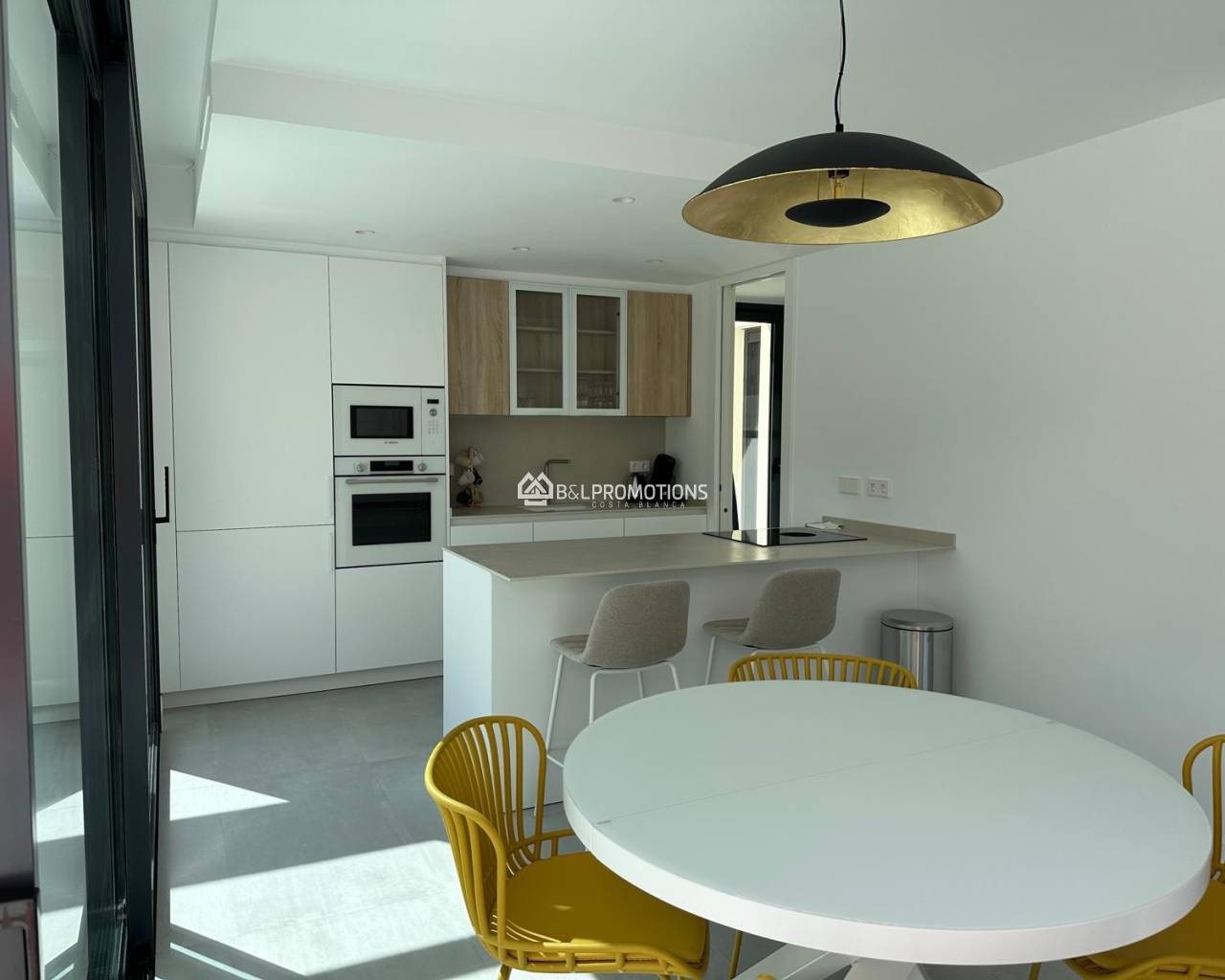 El apartamento acaba de ser entregado y, debido a circunstancias especiales, vuelve a estar a la venta. Está completamente listo para entrar a vivir: todos los muebles, el menaje completo, electrodomésticos de alta gama de la marca Bosch y aire acondicionado están incluidos en el precio. Solo tienes que traer tus maletas.