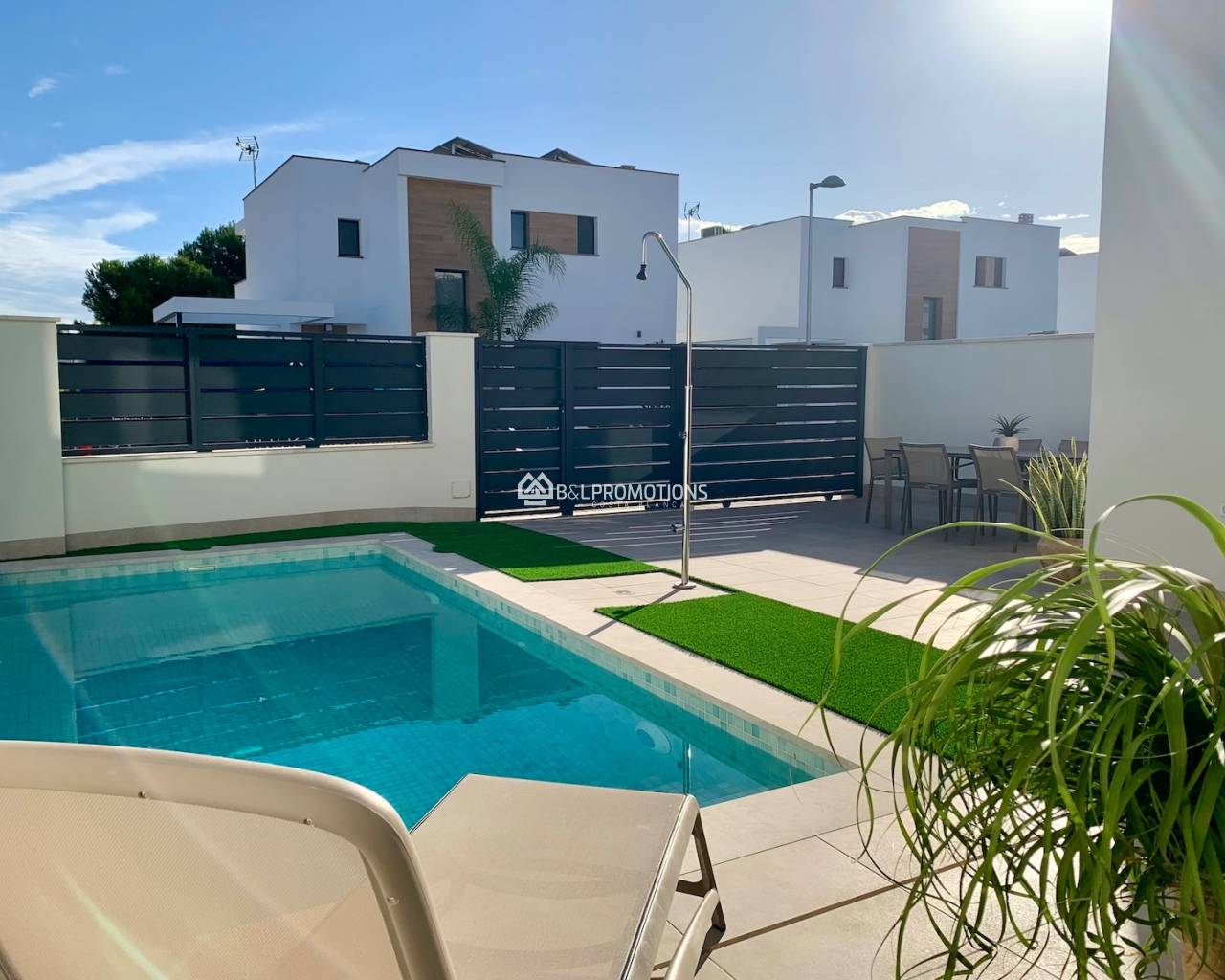 En el exclusivo Roda Golf Resort, una urbanización residencial y campo de golf cerrado y de lujo en la provincia de Murcia, se encuentran estas magníficas villas de obra nueva que combinan a la perfección el confort moderno con la elegancia mediterránea. Situadas muy cerca de Dolores de Pacheco y a poca distancia de las soleadas playas del Mar Menor, esta ubicación ofrece la mezcla ideal de tranquilidad, lujo y buena conexión.