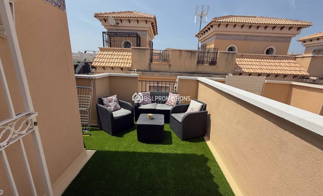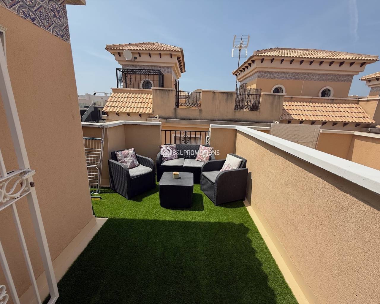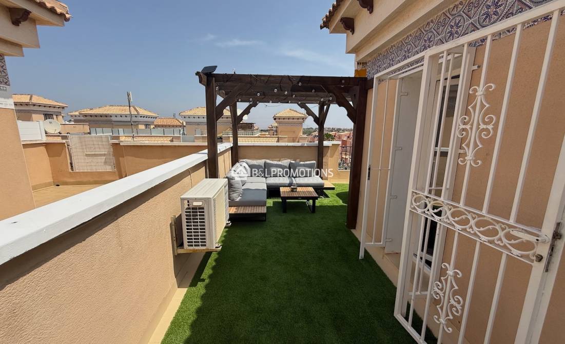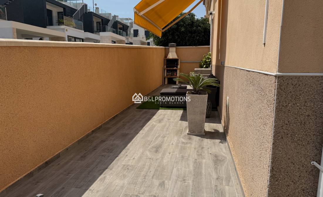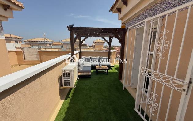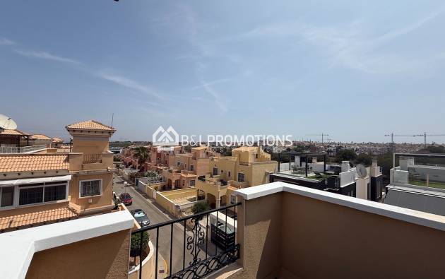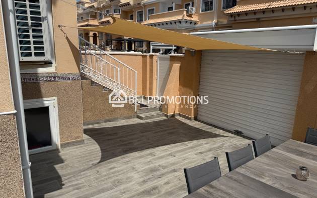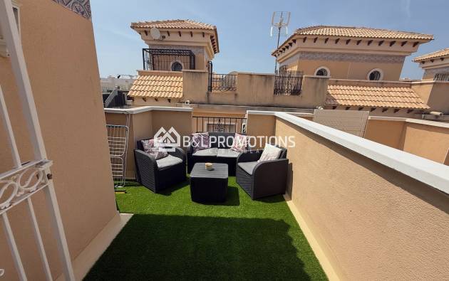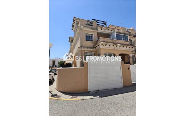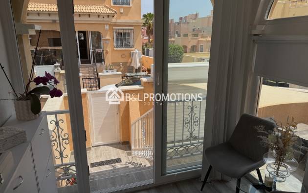 Esta casa adosada en esquina se encuentra en una urbanización tranquila en Villamartín, a poca distancia del animado Villamartín Plaza, supermercados, restaurantes y bares. Las playas están a solo 3 km y el popular centro comercial La Zenia Boulevard también está muy cerca.