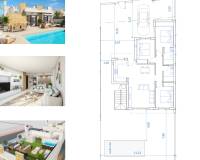 Estas villas contemporáneas cuentan con 3 dormitorios, 2 baños, un amplio salón con cocina semiabierta, una terraza privada y su propia piscina – perfectas para relajarse y disfrutar en buena compañía. Además, podrá disfrutar del sol con total privacidad en su **solárium privado** durante todo el año.